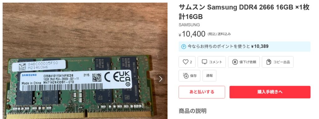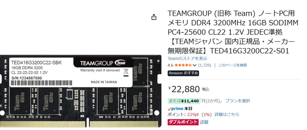16GBのDDR4の価格は???